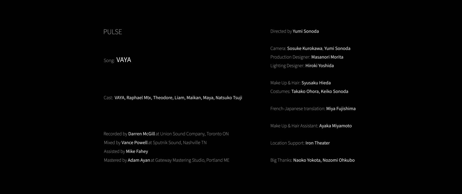 - Produced by VAYA & Yumi Sonoda